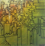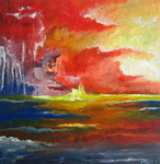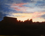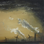 2008Grote kale appelboom op heuvel, bergachtig gebied met onrustig wolkenpartij