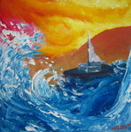 2015Stormachtige zee met een grote golf die op een boot af komt