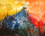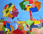 2013Bosachtig schilderij, gestipelt, gedrukt, gesponst, veel kleurgebruik